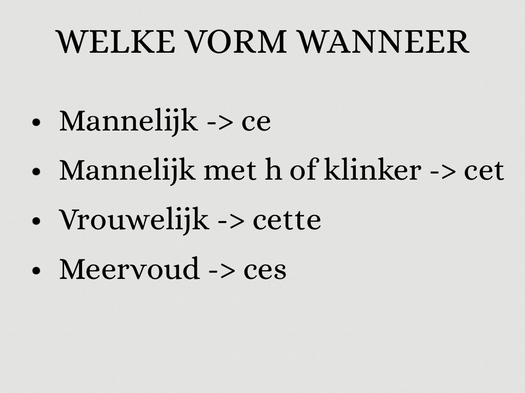 Vrouwelijk -> cette