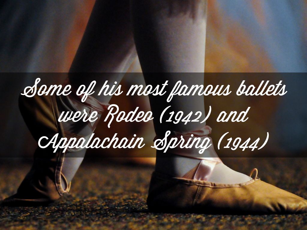 Copland received many awards but some of his most famous awards was. The Pultizer Prize from the ballet Appalachain Spring. The other award was in 1964, it was called the Presidential Medal of Freedom the highest civilian honor.