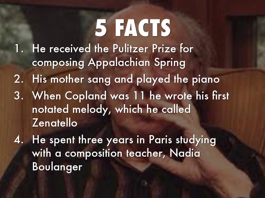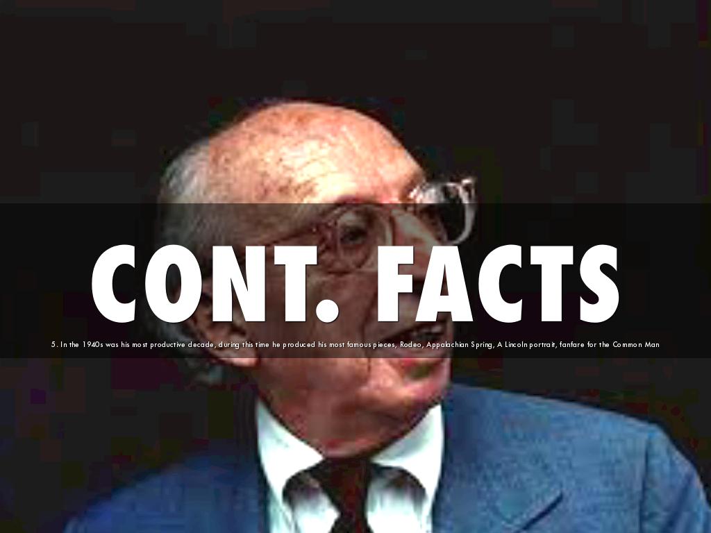 5. In the 1940s was his most productive decade, during this time he produced his most famous pieces, Rodeo, Appalachian Spring, A Lincoln portrait, fanfare for the Common Man
