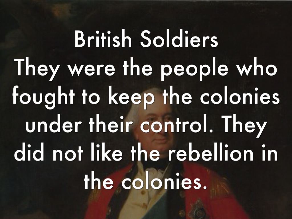 They were the people who fought to keep the colonies under their control. They did not like the rebellion in the colonies.