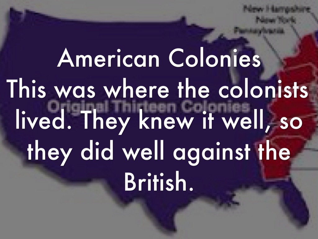 This was where the colonists lived. They knew it well, so they did well against the British.