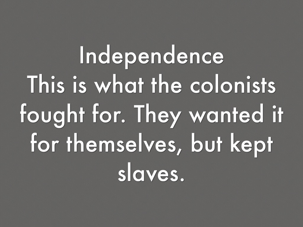 This is what the colonists fought for. They wanted it for themselves, but kept slaves.