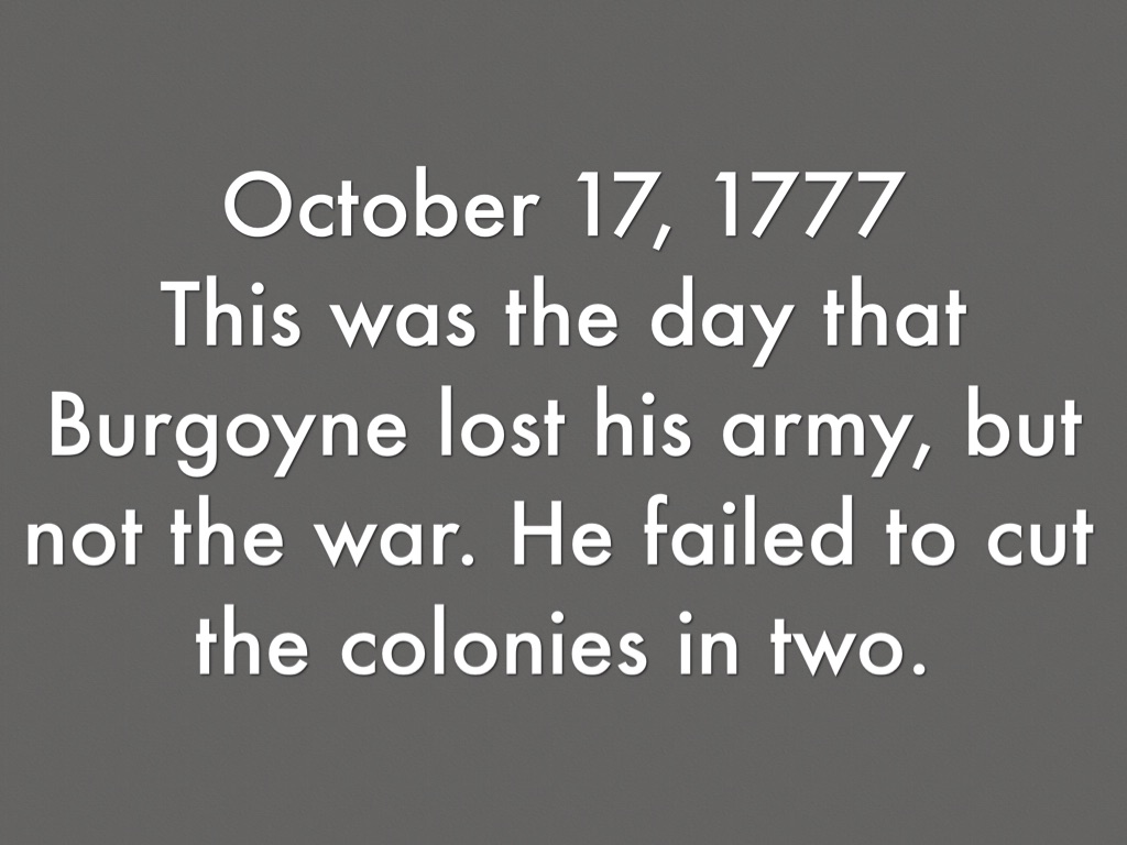 This was the day that Burgoyne lost his army, but not the war. He failed to cut the colonies in two.