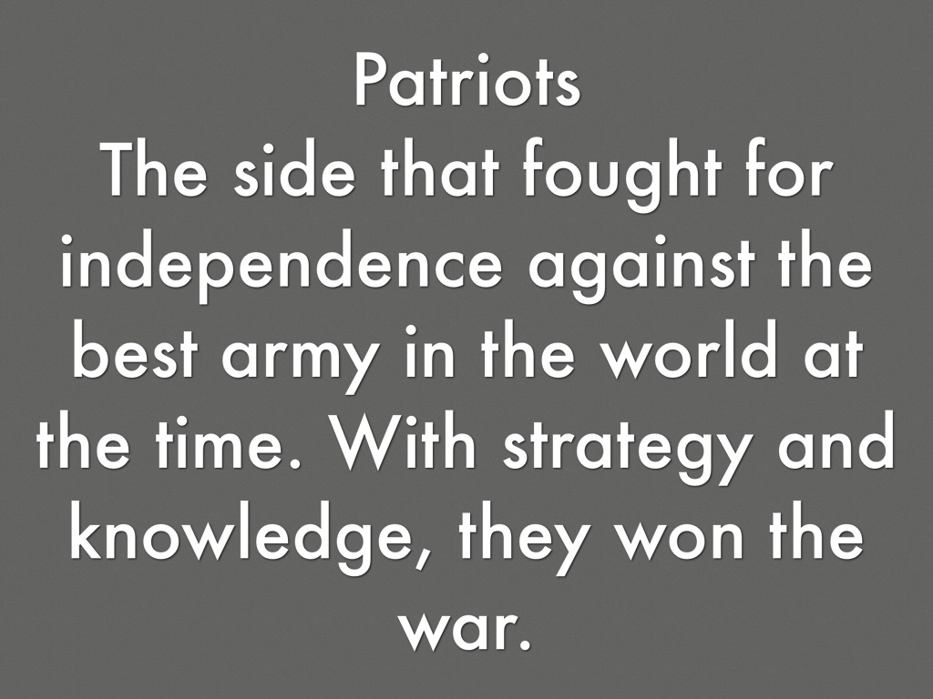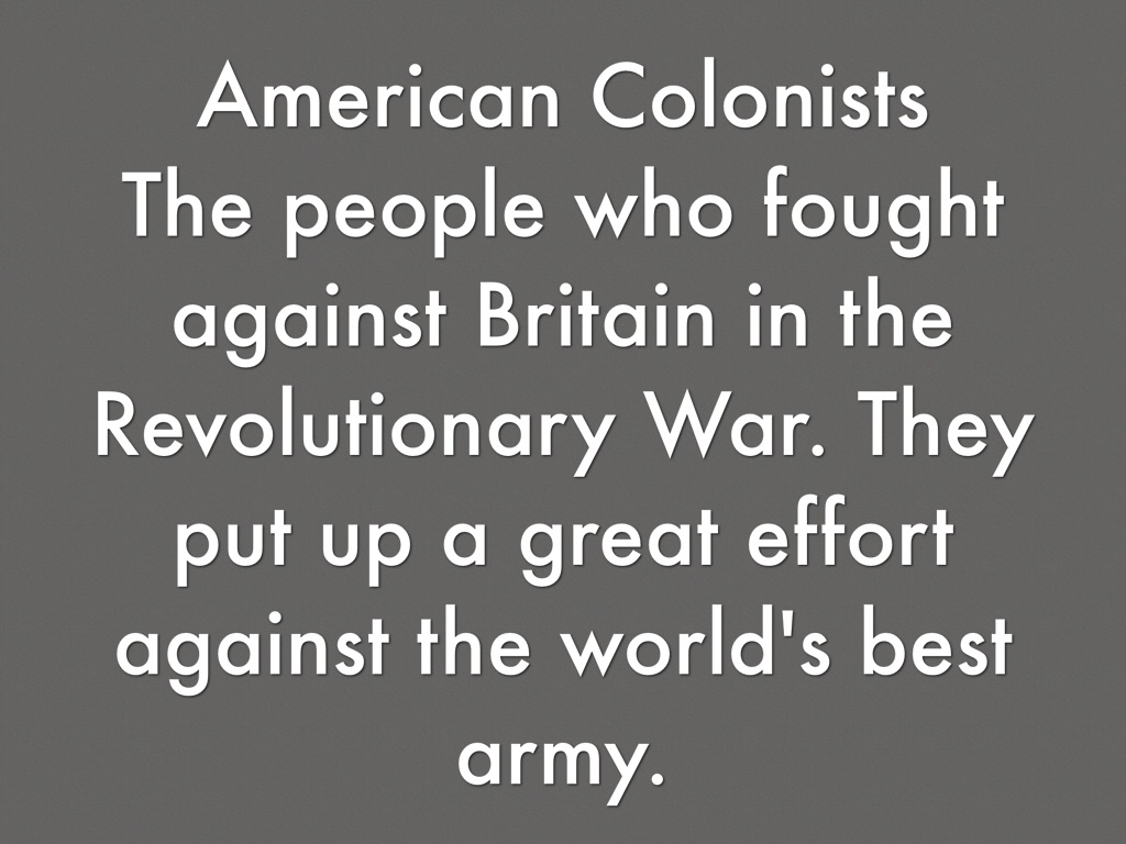 The people who fought against Britain in the Revolutionary War. They put up a great effort against the world's best army.