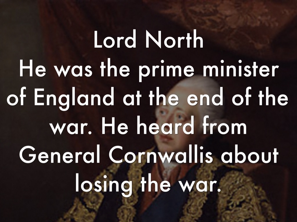 He was the prime minister of England at the end of the war. He heard from General Cornwallis about losing the war.