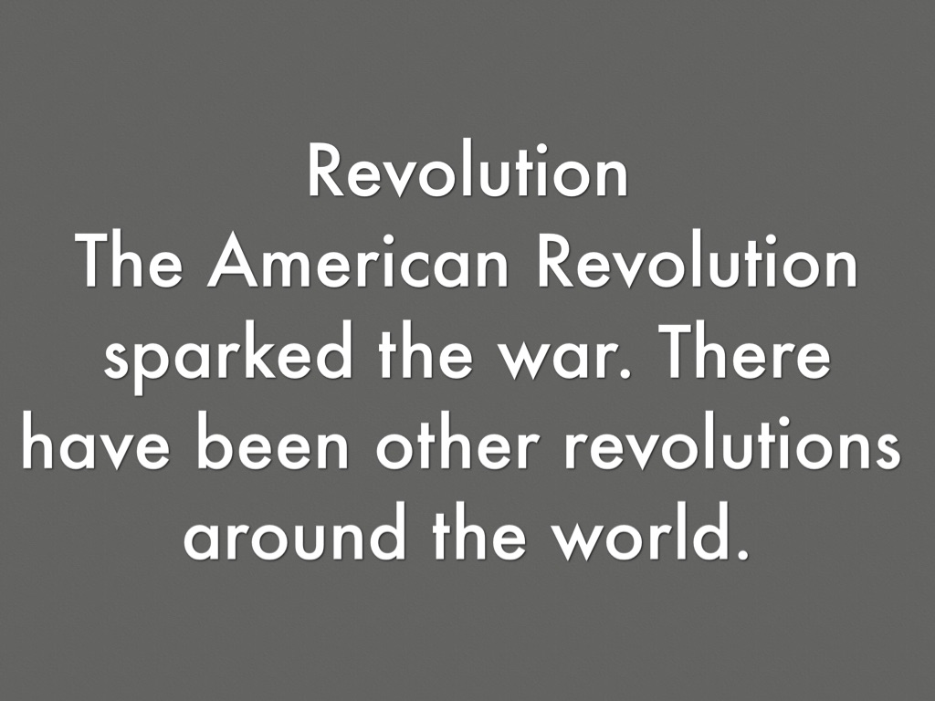The American Revolution sparked the war. There have been other revolutions around the world.