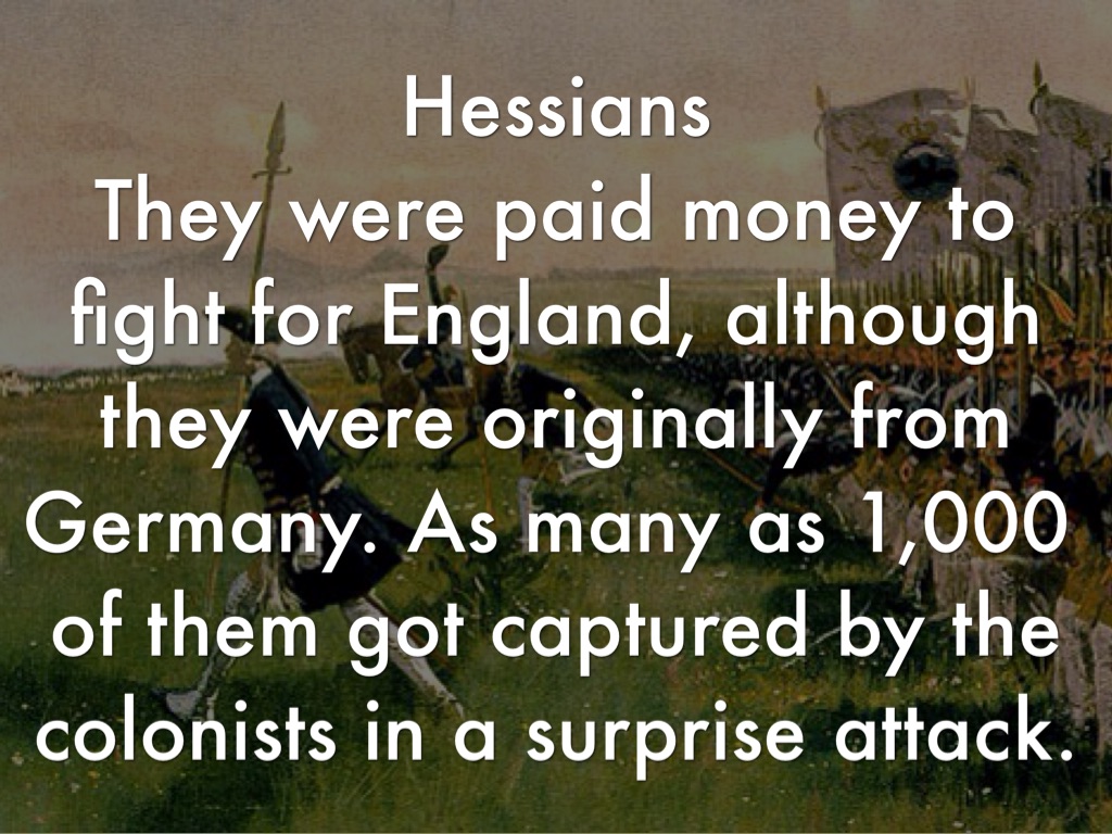 They were paid money to fight for England, although they were originally from Germany. As many as 1,000 of them got captured by the colonists in a surprise attack.