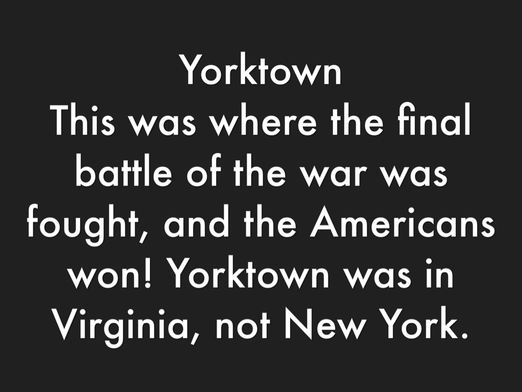 This was where the final battle of the war was fought, and the Americans won! Yorktown was in Virginia, not New York.