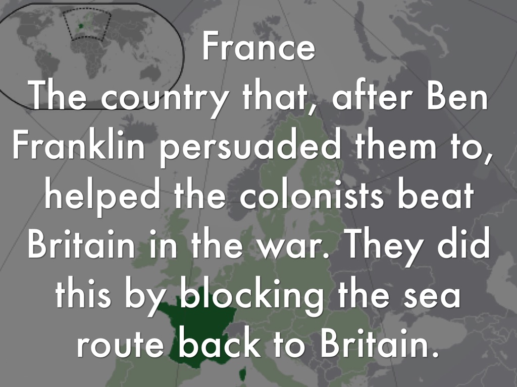 The country that, after Ben Franklin persuaded them to, helped the colonists beat Britain in the war. They did this by blocking the sea route back to Britain.