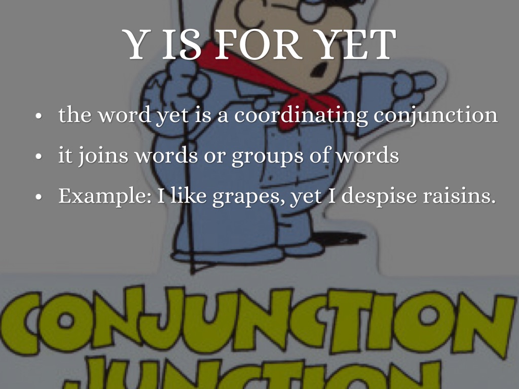 Example: I like grapes, yet I despise raisins.
