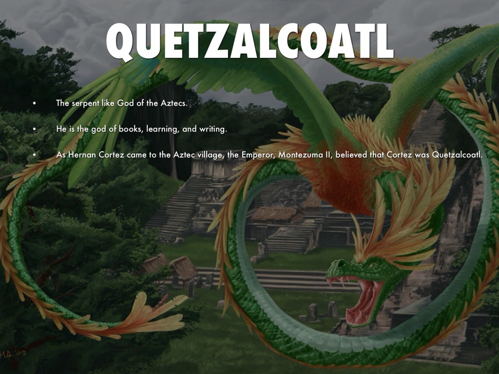 As Hernan Cortez came to the Aztec village, the Emperor, Montezuma II, believed that Cortez was Quetzalcoatl.