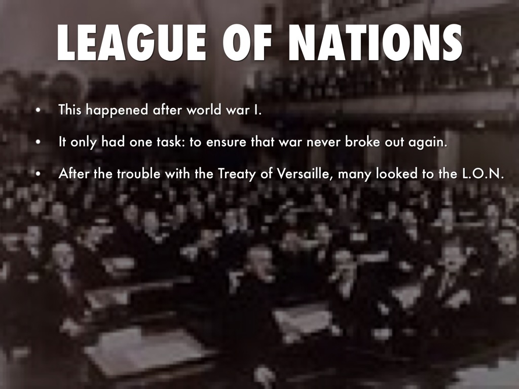 After the trouble with the Treaty of Versaille, many looked to the L.O.N.