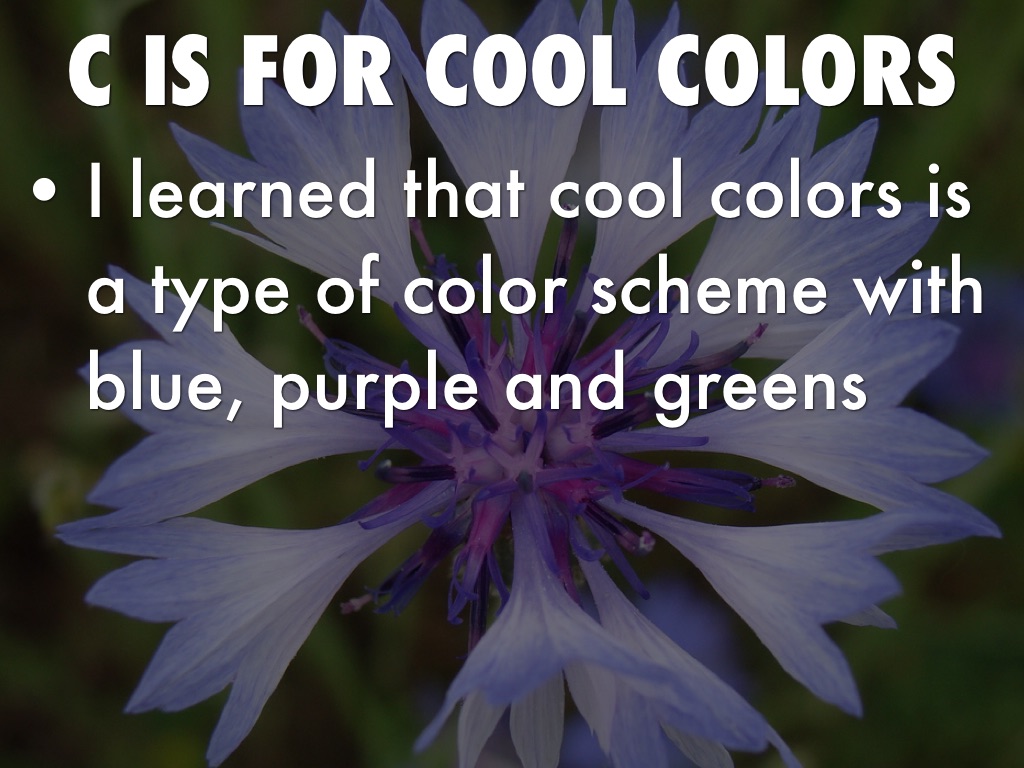 I learned that cool colors is a type of color scheme with blue, purple and greens