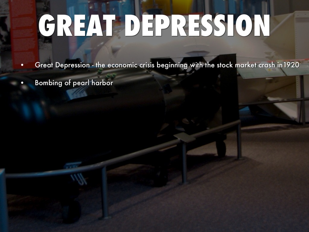 Great Depression - the economic crisis beginning with the stock market crash in1920