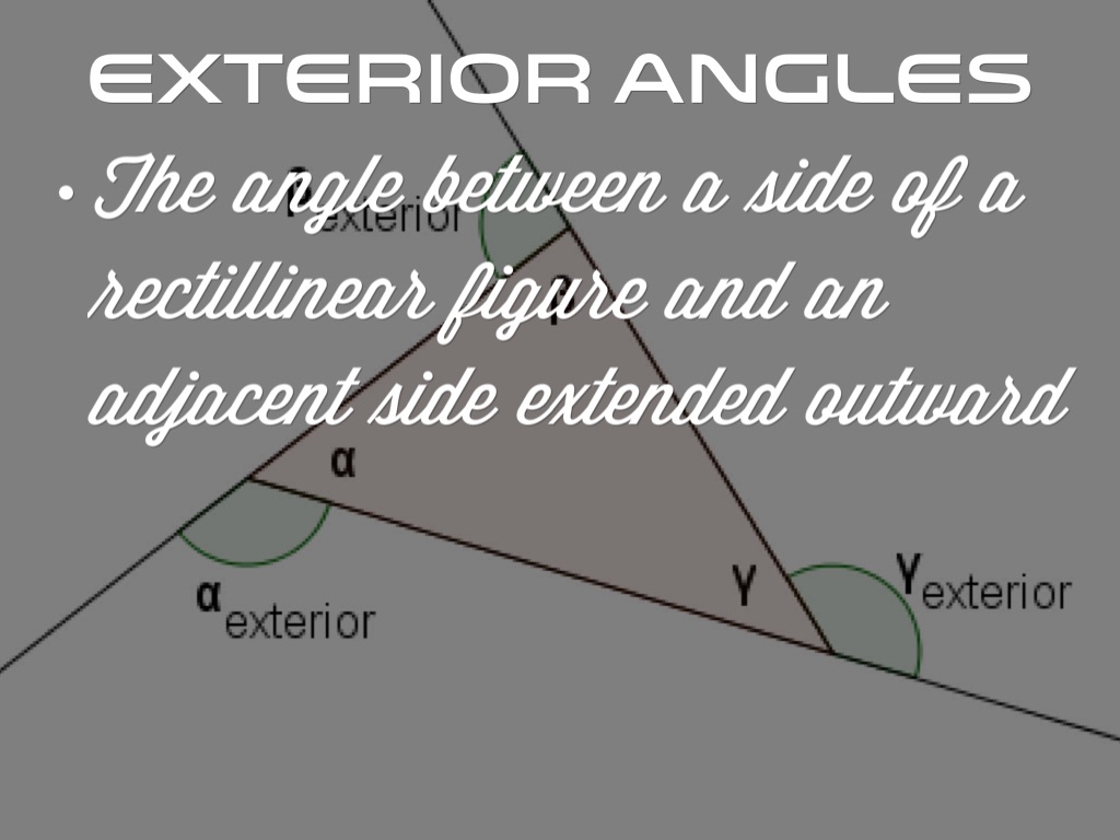 The angle between a side of a rectillinear figure and an adjacent side extended outward