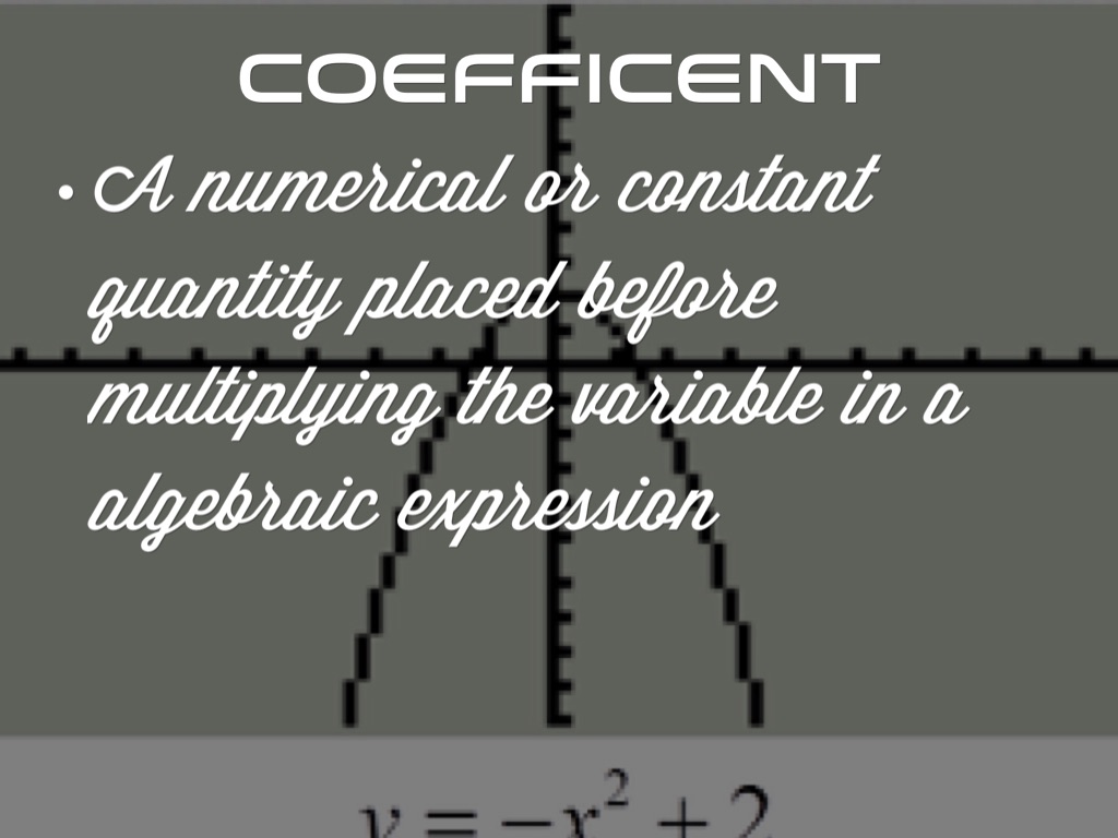 A numerical or constant quantity placed before multiplying the variable in a algebraic expression