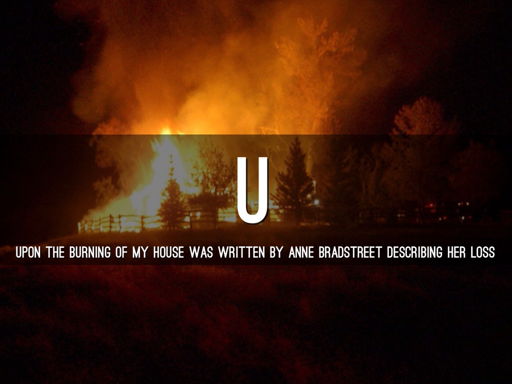 UPON THE BURNING OF MY HOUSE WAS WRITTEN BY ANNE BRADSTREET DESCRIBING HER LOSS