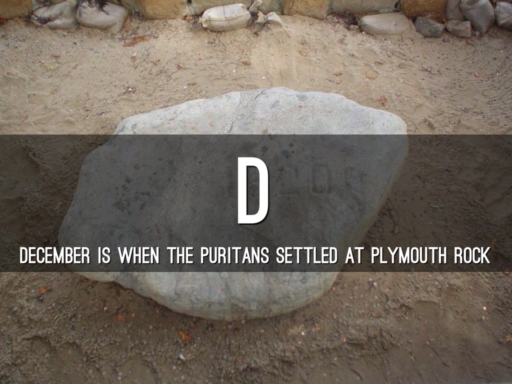 DECEMBER IS WHEN THE PURITANS SETTLED AT PLYMOUTH ROCK