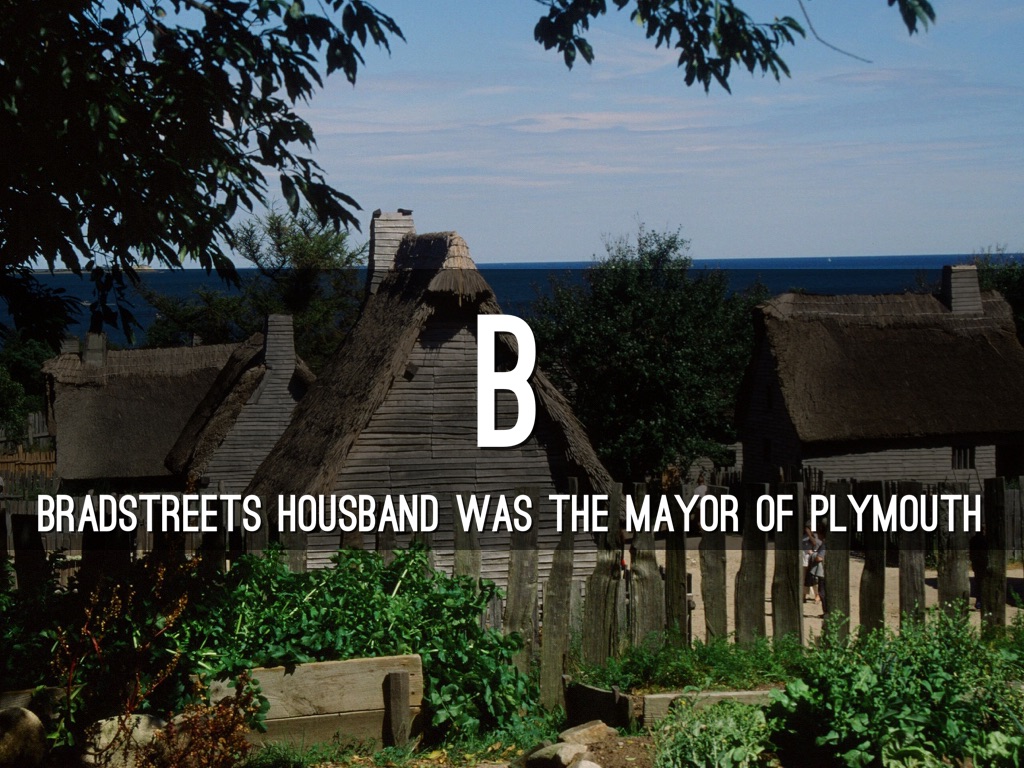 BRADSTREETS HOUSBAND WAS THE MAYOR OF PLYMOUTH
