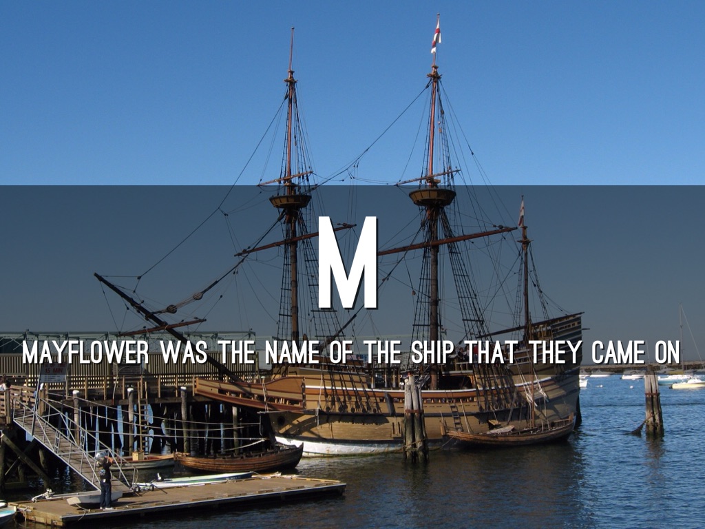 MAYFLOWER WAS THE NAME OF THE SHIP THAT THEY CAME ON