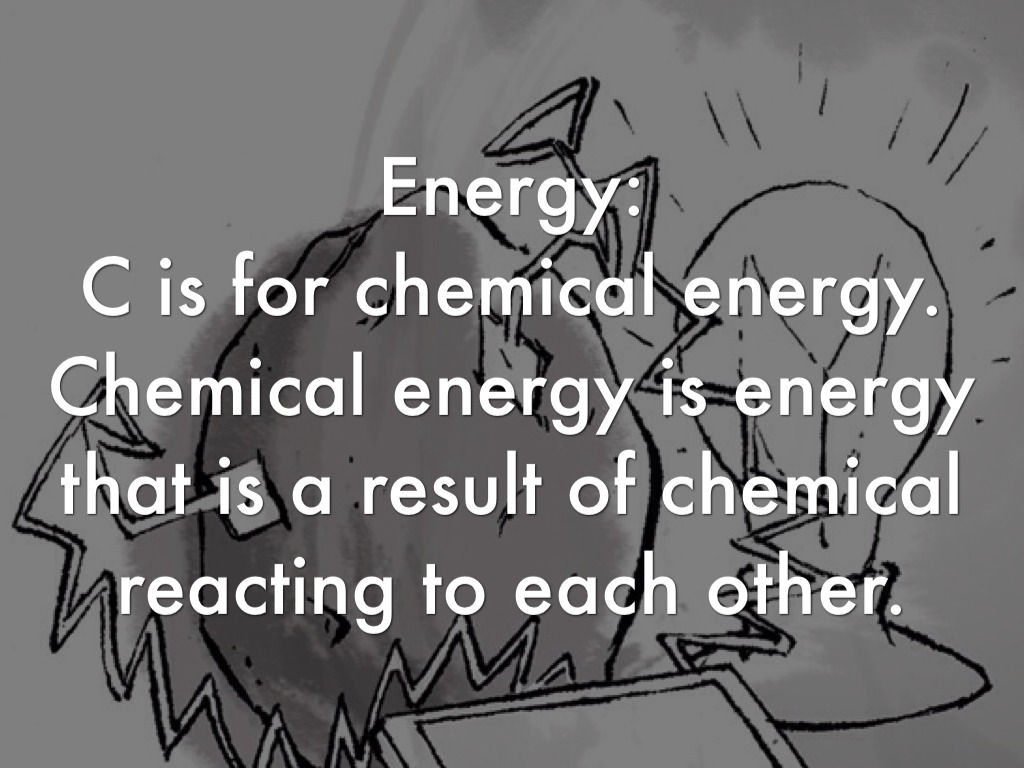 Chemical energy is energy that is a result of chemical reacting to each other.