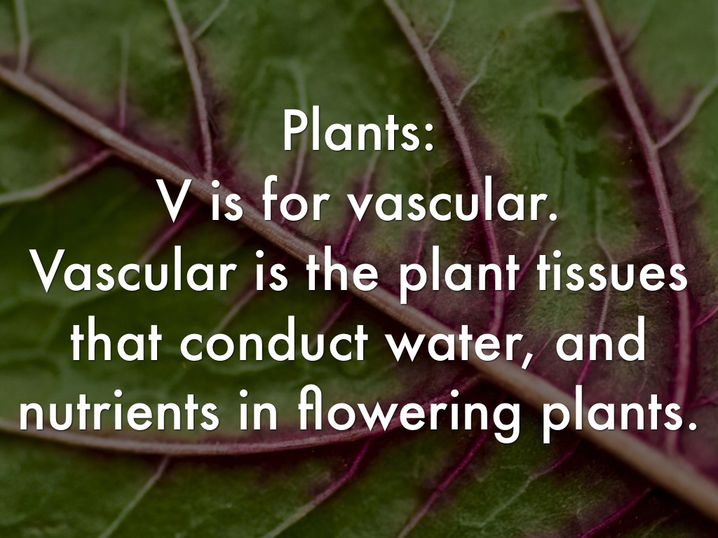 Vascular is the plant tissues that conduct water, and nutrients in flowering plants.