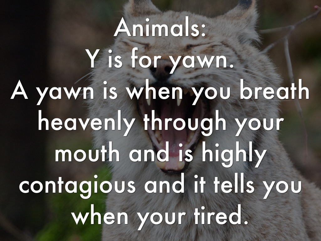 A yawn is when you breath heavenly through your mouth and is highly contagious and it tells you when your tired.