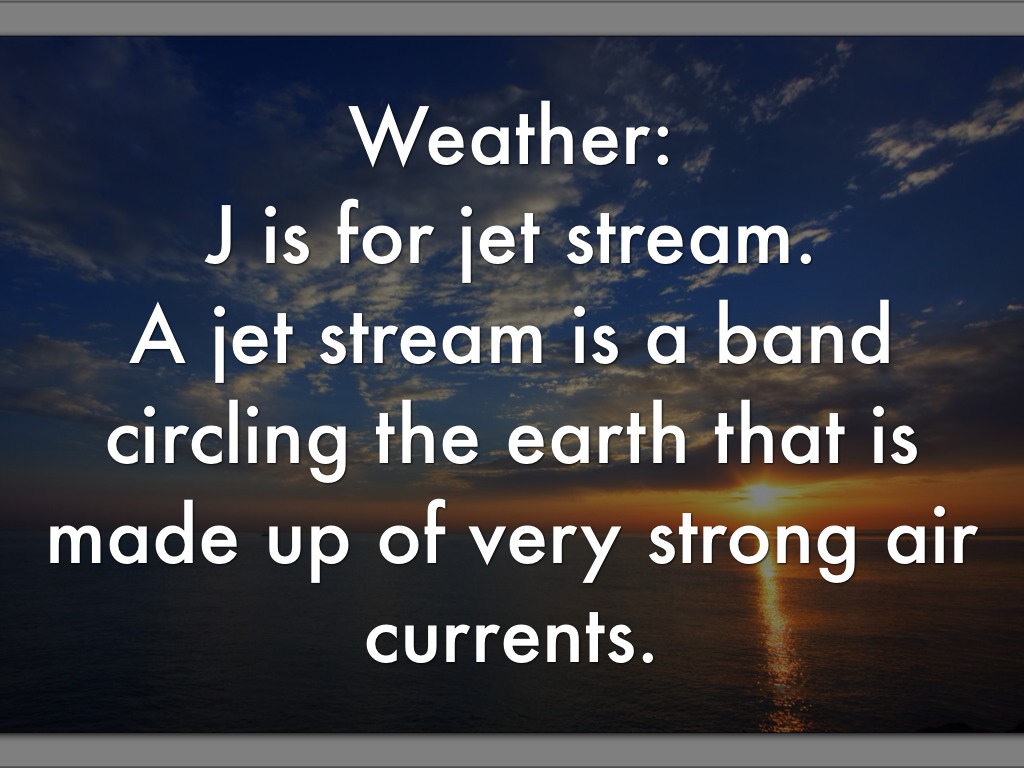 A jet stream is a band circling the earth that is made up of very strong air currents.