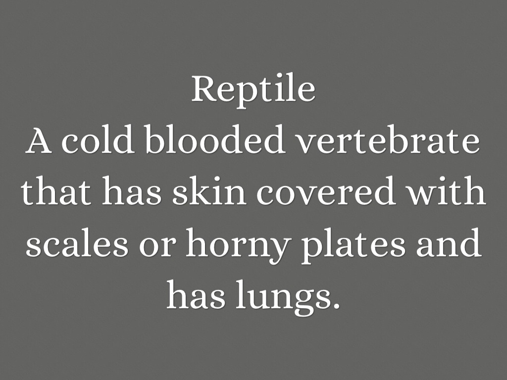 A cold blooded vertebrate that has skin covered with scales or horny plates and has lungs.