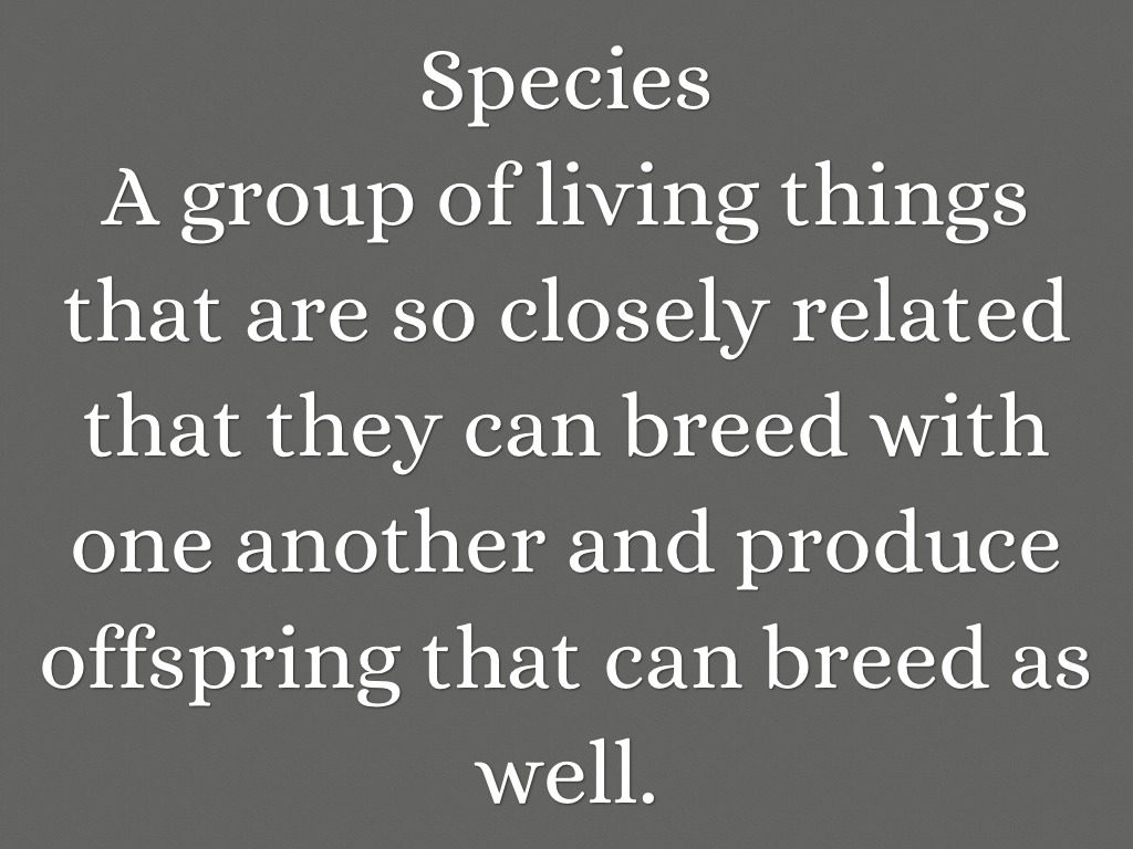 A group of living things that are so closely related that they can breed with one another and produce offspring that can breed as well.