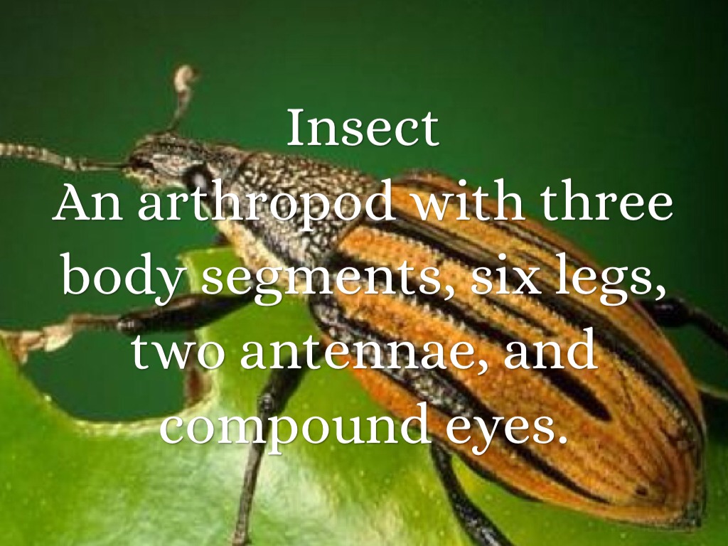 An arthropod with three body segments, six legs, two antennae, and compound eyes.