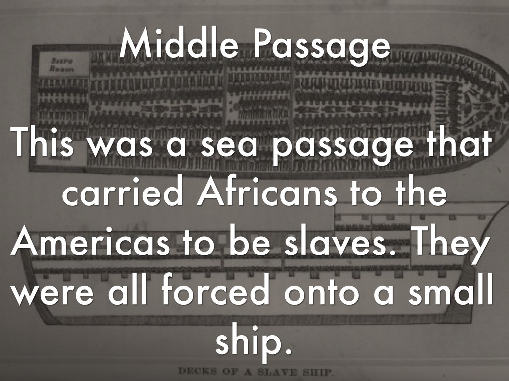 This was a sea passage that carried Africans to the Americas to be slaves. They were all forced onto a small ship.