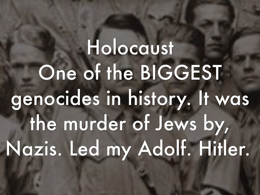 One of the BIGGEST genocides in history. It was the murder of Jews by, Nazis. Led my Adolf. Hitler.