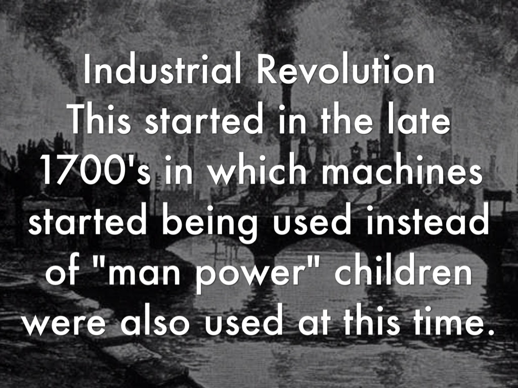 This started in the late 1700's in which machines started being used instead of "man power" children were also used at this time.