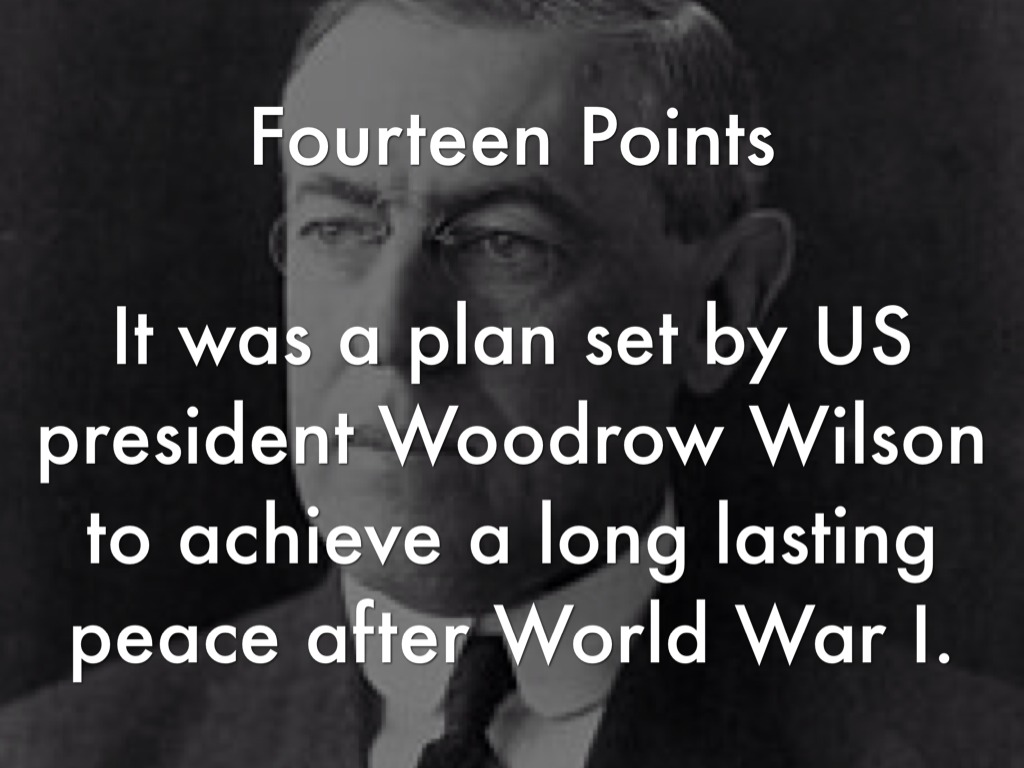 It was a plan set by US president Woodrow Wilson to achieve a long lasting peace after World War I.