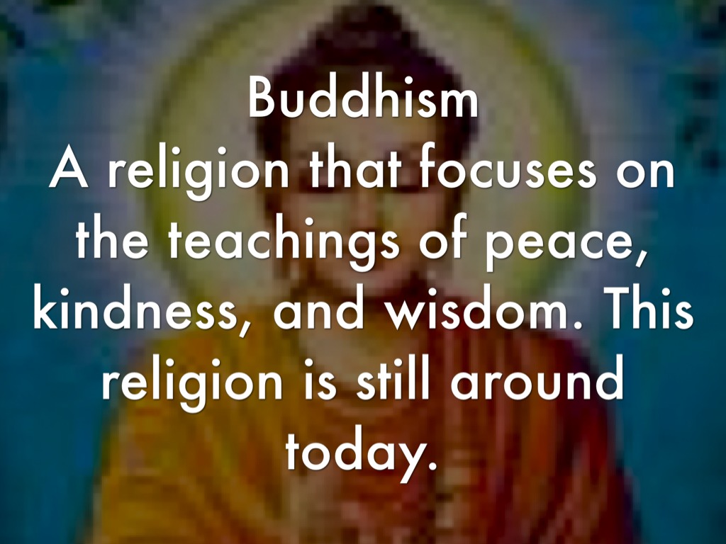 A religion that focuses on the teachings of peace, kindness, and wisdom. This religion is still around today.