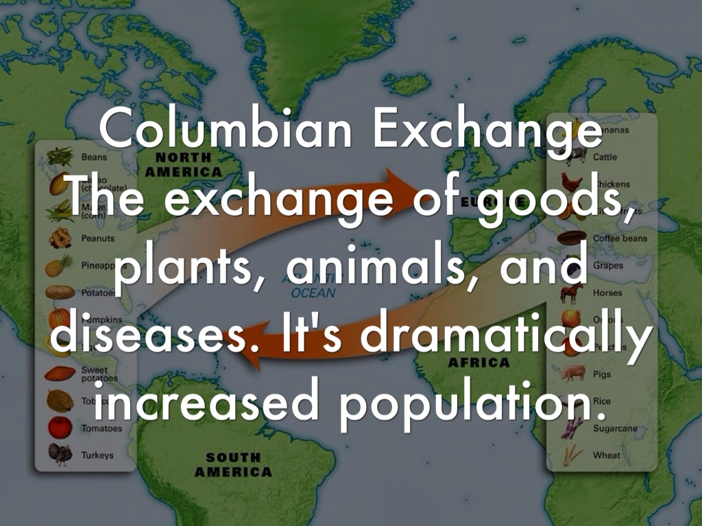 The exchange of goods, plants, animals, and diseases. It's dramatically increased population.