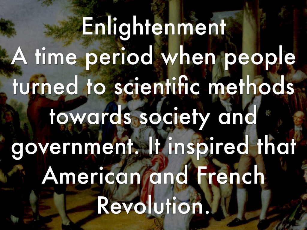 A time period when people turned to scientific methods towards society and government. It inspired that American and French Revolution.