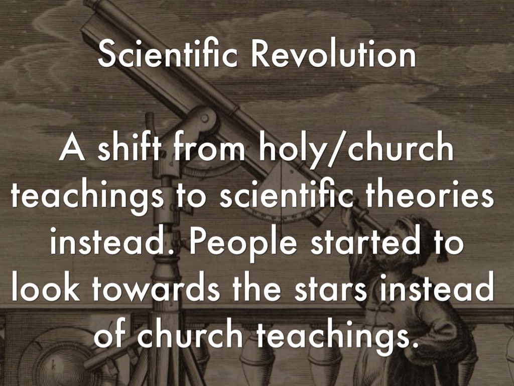 A shift from holy/church teachings to scientific theories instead. People started to look towards the stars instead of church teachings.