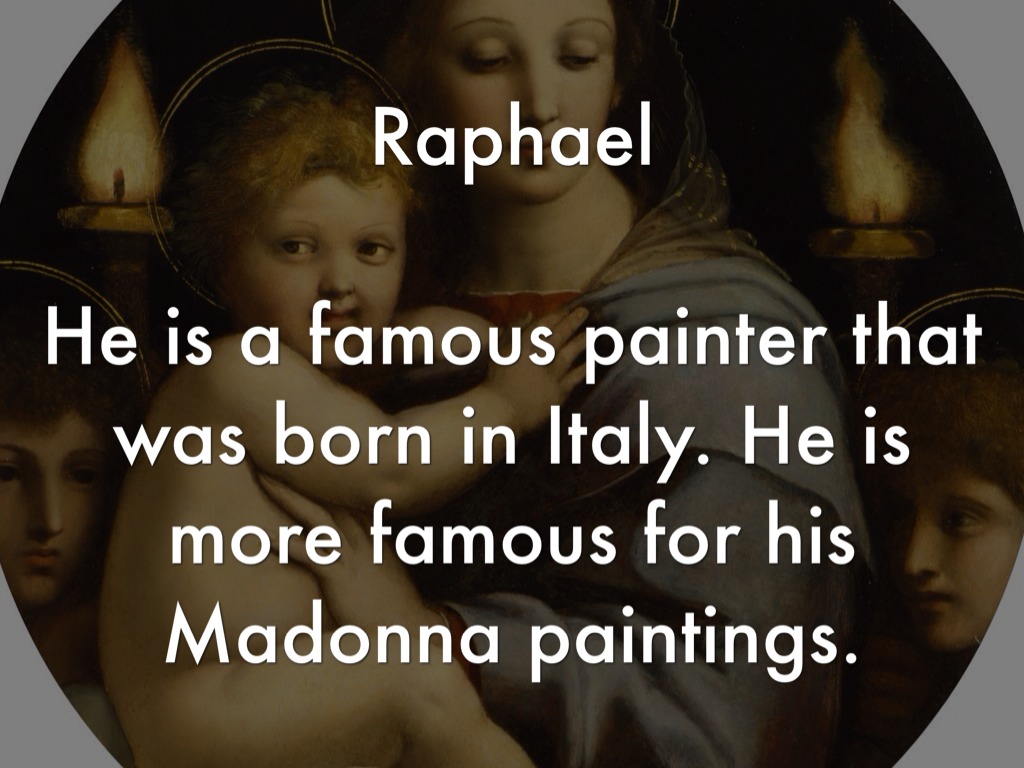He is a famous painter that was born in Italy. He is more famous for his Madonna paintings.