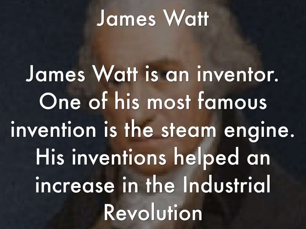 James Watt is an inventor. One of his most famous invention is the steam engine. His inventions helped an increase in the Industrial Revolution