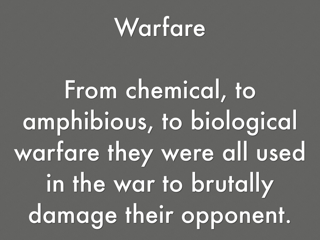 From chemical, to amphibious, to biological warfare they were all used in the war to brutally damage their opponent.