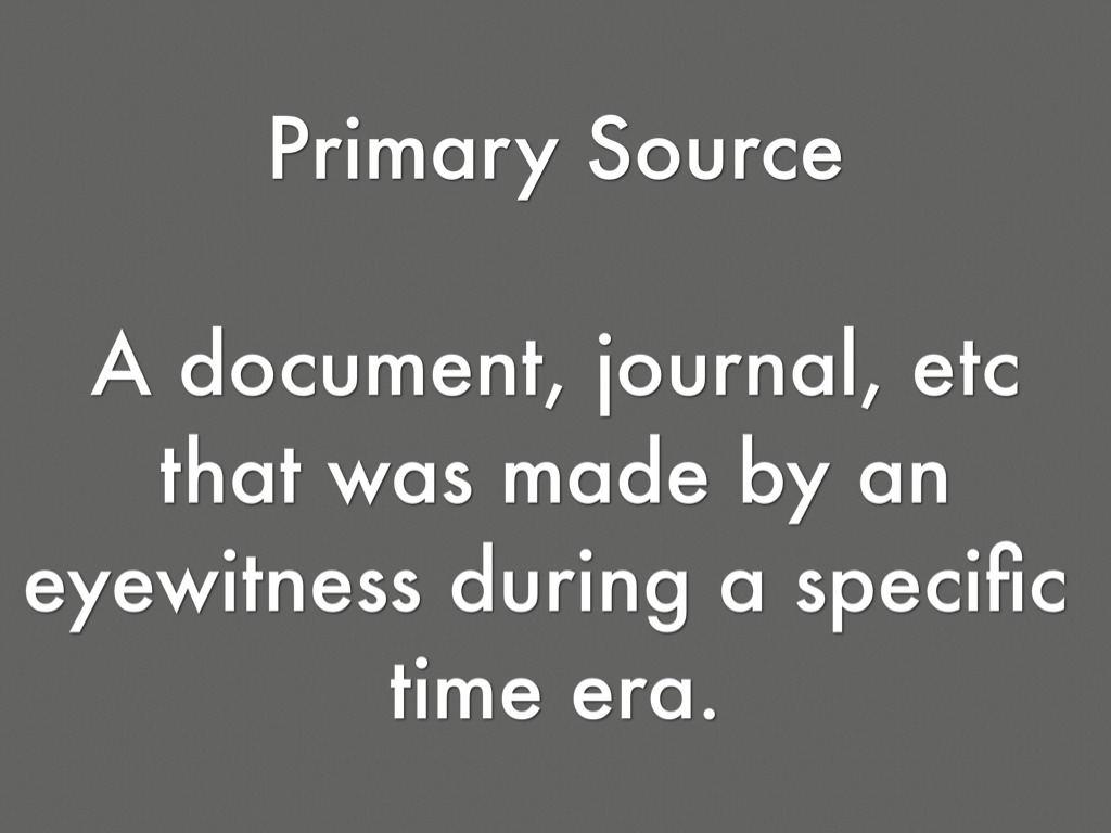 A document, journal, etc that was made by an eyewitness during a specific time era.