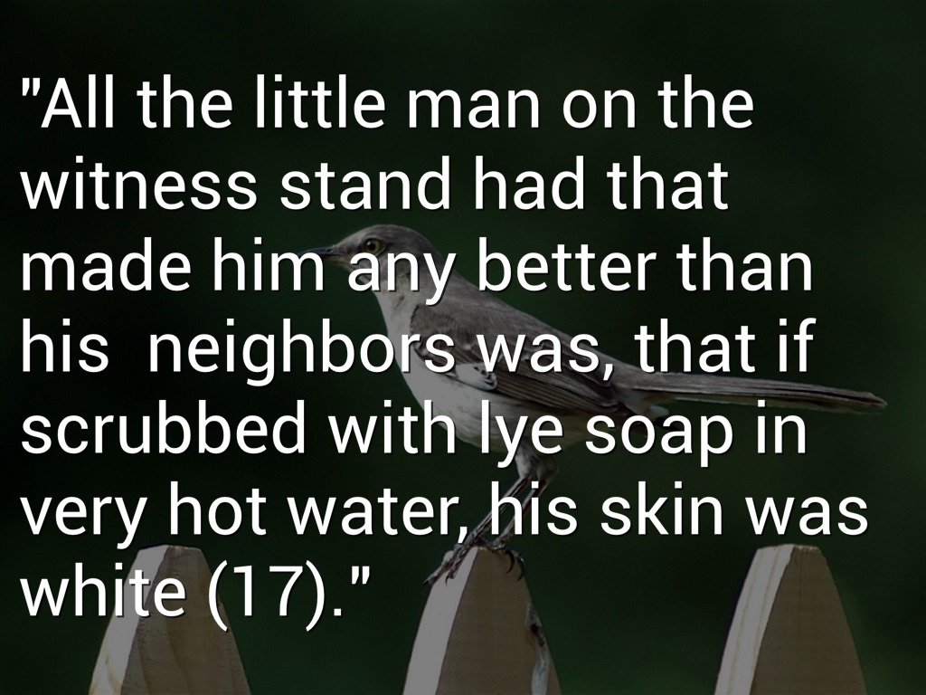 "All the little man on the witness stand had that made him any better than his neighbors was, that if scrubbed with lye soap in very hot water, his skin was white (17)."