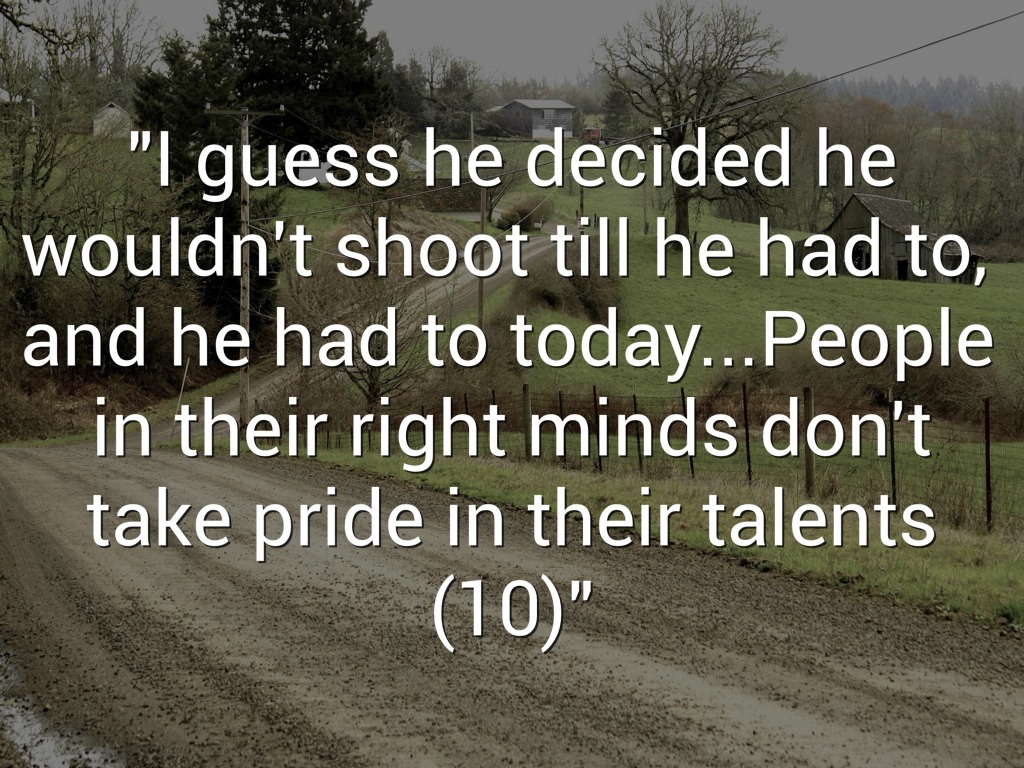 "I guess he decided he wouldn't shoot till he had to, and he had to today...People in their right minds don't take pride in their talents (10)"