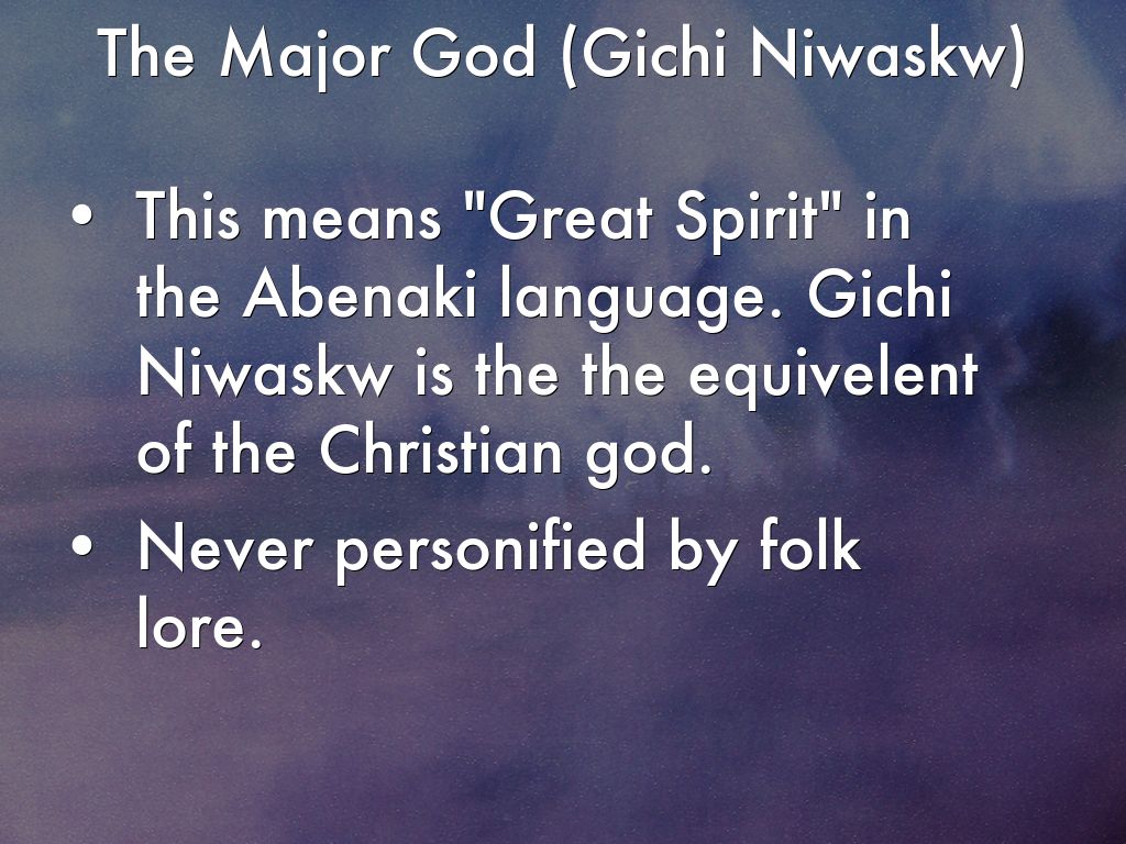 Gluskabe: The god who protected the people of the Abenaki tribe and tought them the art of civilization