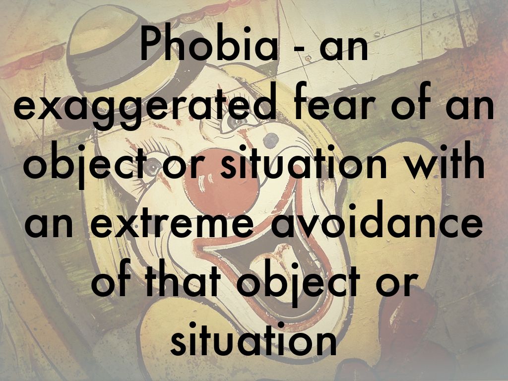 Phobia - an exaggerated fear of an object or situation with an extreme avoidance of that object or situation