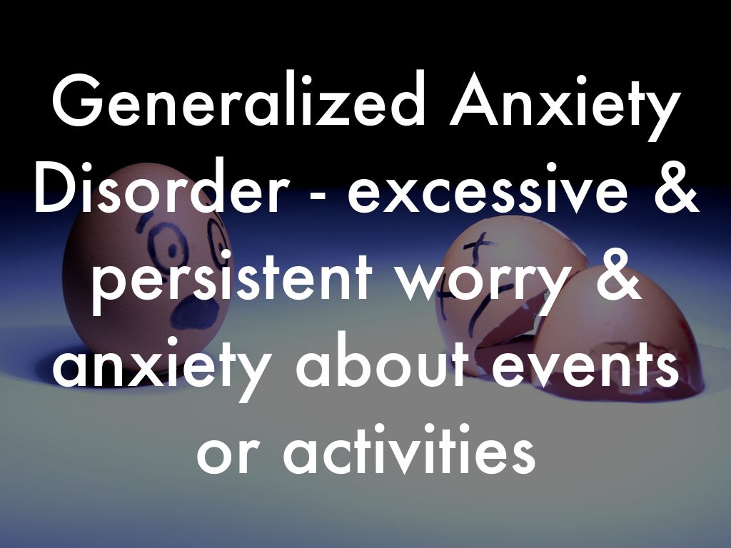 Generalized Anxiety Disorder - excessive & persistent worry & anxiety about events or activities
