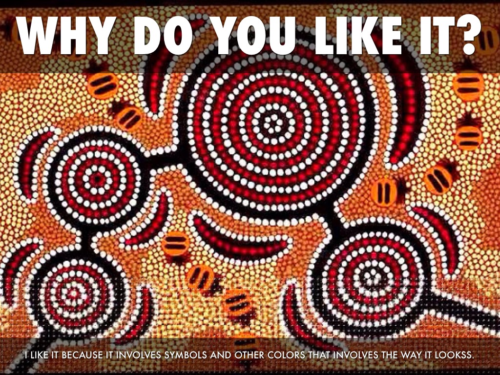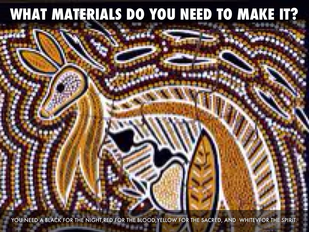 IT IS ART BASED ON STORYS FROM THE ABORIGINAL PEOPLE.