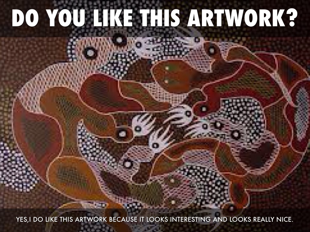 YES,I DO LIKE THIS ARTWORK BECAUSE IT LOOKS INTERESTING AND LOOKS REALLY NICE.